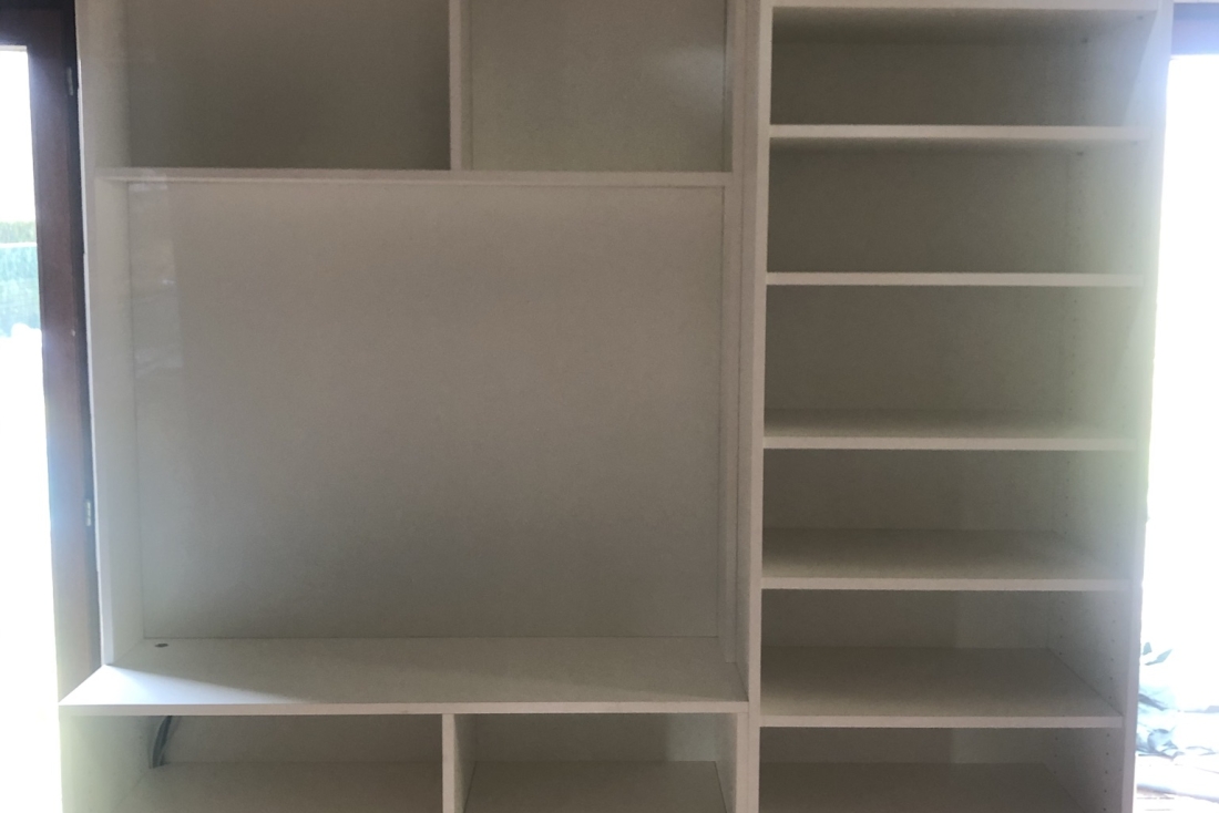 Custom-made wall cabinet with integrated TV setup for a private client.
